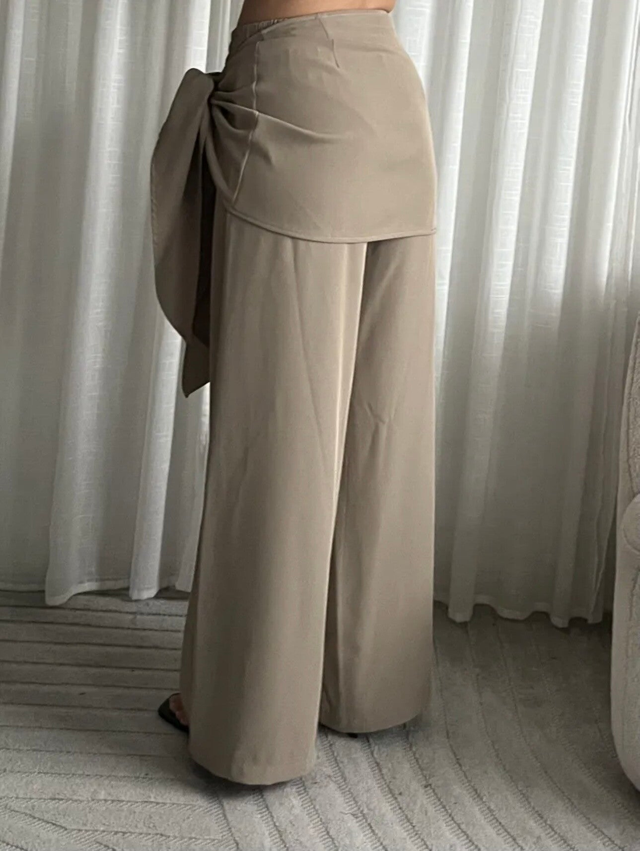 Deze elegante broek combineert comfort met een verfijnde uitstraling. De sjaal zit los en kun je dus zelf knopen naar wens